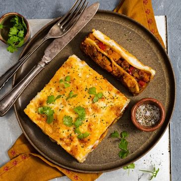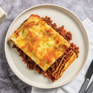 Ingredients:Bolognese Sauce (69%) (Beef Mince (26%), Crushed Tomato (26%) (Tomato, Acid (330)), Tomato Paste (5%) (Tomato Paste, Water, Acidity Regulator (330)), Carrot, Celery, Onion, Garlic, Beef Booster, Mushroom Booster (Flavour Enhancer (635)), Natural Flavour, Brown Sugar, Sweet Paprika, Italian Herbs, Black Pepper, Parsley, Salt), Bechamel (Water, Milk Powder (2%), Butter (Milk), Flour (Wheat), Natural Flavour, Salt, White Pepper), Lasagne Sheets (11%) (Durum Wheat, Water, Wheat Flour (Thiamine, Folic Acid), Whole Egg), Tasty Cheese (2%) (Milk).