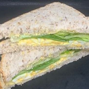 Egg mayonnaise (egg, mayonnaise), fresh lettuce, wholegrain sliced bread (whole wheat flour, water, yeast, grains/seeds), butter or margarine.