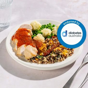 Ingredients:Chicken (20%), Cauliflower (16%), Peas, Red Pepper Strips (11%) (Red Peppers, Vinegar, Salt, Sugar), Brown Rice, Lentils (Lentils, Salt), Pumpkin, Tri-colour Quinoa, Spinach, Sundried Tomato Strips, Tomato Paste, Canola Oil, Pepitas, Lemon Juice (Sulphites), Marinade (Acidity Regulators (327, 451, 450), Thickeners (415, 412)), Garlic, Brown Sugar, Vinegar And Cultured Sugar, Garlic Salt, Modified Starch (1422), Smoked Paprika, White Pepper, Cinnamon, Oregano Mix, Salt, Cumin, Fennel, Ground Coriander (Wheat).