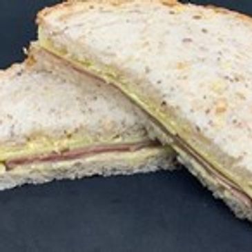 Silverside beef, wholegrain sliced bread (whole wheat flour, water, yeast, grains/seeds), honey glaze, butte, seasoning.