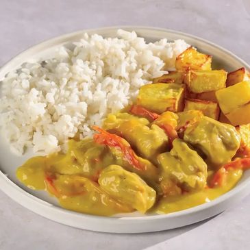 Ingredients: Basmati Rice (38%), Chicken (32%), Coconut Cream (13%) (Coconut Cream, Stabilisers (415, 412, 407)), Capsicum, Onion, Lime Juice (Sulphites), Lemongrass Paste (Milk), Modified Starch (1422), Garlic, Sweet Chilli Sauce, Chicken Booster, Ginger, Natural Flavour, Fish Sauce, Salt, Turmeric, Chilli Powder, Corian